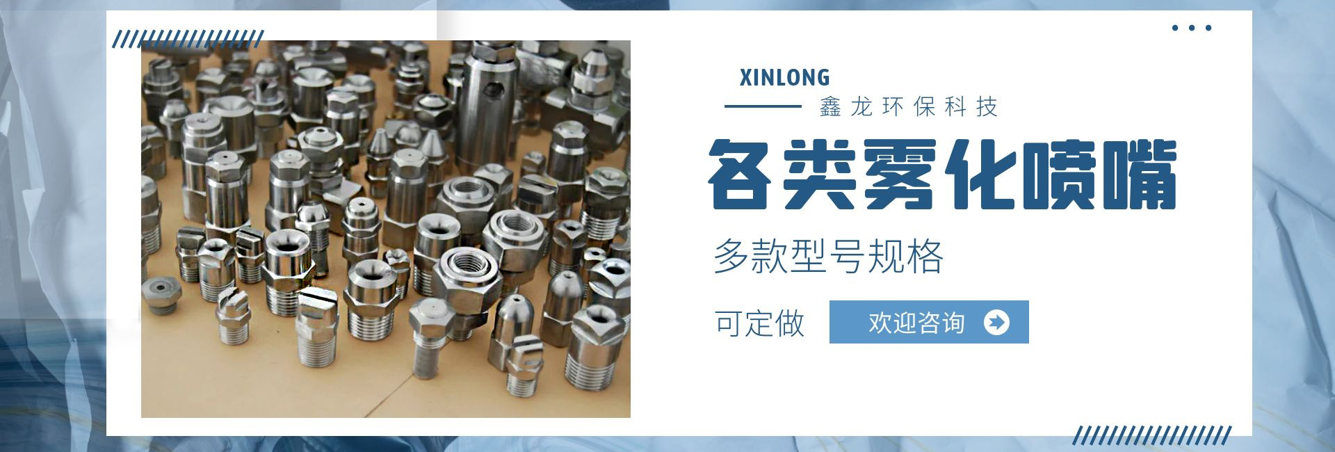 深圳市鑫龍環保科技有限公司是專業從事各類噴嘴研制和開發的廠家,技術力量雄厚,生產工藝先進,檢測手段齊全,管理制度嚴格,產品質量穩定可靠。產品種類多達上萬種,適用于涂裝處理、環保、線路板、電子電力、汽車制造、家電制造、造紙業、紡織業、防火等行業;我公司產品不僅為國內多家大中型企事業選用,還配套外銷日本、美國、東南亞等國家和地區。我們具有本行業前衛的噴嘴制造設施,在我們裝備完善的噴嘴實驗室,可以進行各種類型噴嘴的測試研究,以優化噴霧系統的性能。我公司提供專業技術、應用和售后服務,幫助用戶選擇適合的噴嘴,并保持噴嘴在良好條件下運行。從噴嘴選擇指導,到量身定制的設計,直到噴霧顆粒的測試分析,在每個訂單中都包含了我們好的技術支持,用戶反映:我司顯著的特點是銷售工程師在幫助用戶降低成本、減少加工和維修時間,降低工業用水和化學劑消耗等方面有著非常豐富的經驗,使用戶可以更經濟、更有效的解決實際問題!我們繼續堅持專業是金的理念,制造好的噴嘴是我們永遠的追求和努力!